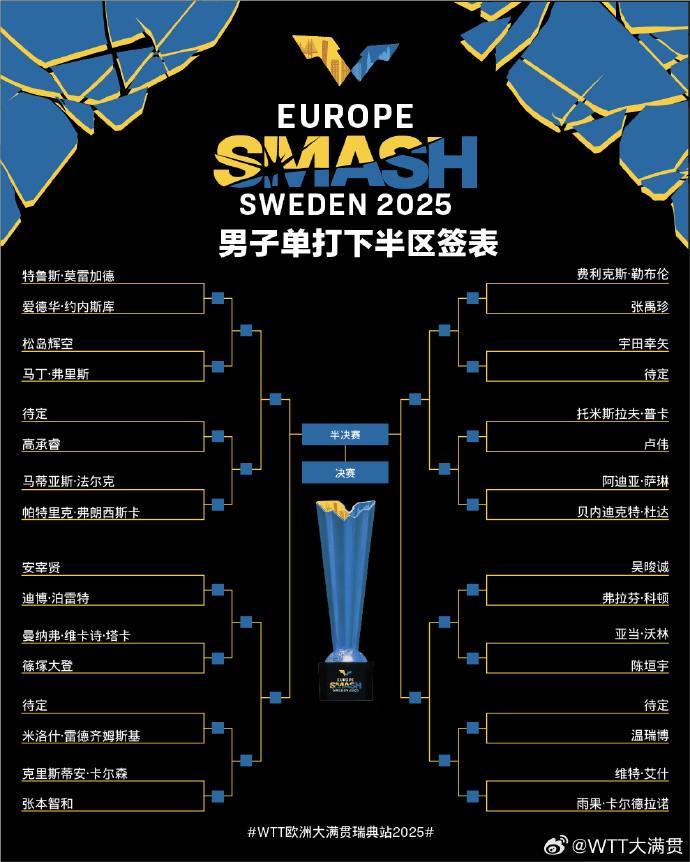 北京时间8月15日,WTT欧洲大满贯瑞典站抽签结果出炉。男单方面,林诗栋、向鹏、梁靖崑、林高远位列上半区,陈垣宇、温瑞博被分在下半区。